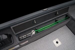 多様な釣りに対応する汎用性で、高いコストパフォーマンスを実現したバスボート、それがVS1665Tです。広々としたコックピットとキャスティングに最適なフロントデッキで、釣りのスタイルを問いません。さらに2025年モデルでは、鋼鉄以上の強度を持つ独自のグラスファイバー素材を採用し、耐久性が飛躍的に向上。あらゆるフィールドでアングラーを力強くサポートします。